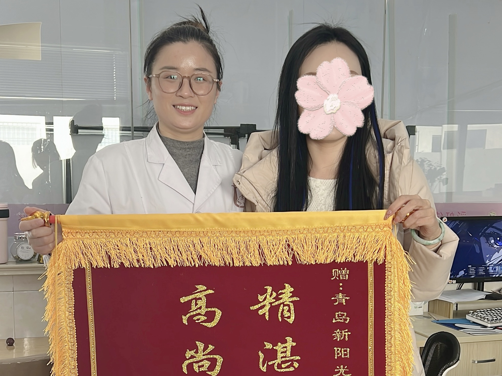 青岛刘女士术后两个月前来复查,送上锦旗